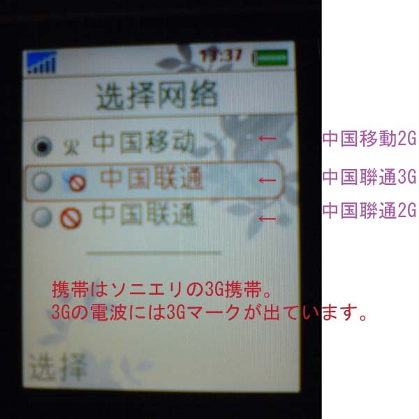 中国の携帯電話業界でも本格的に3Gが始まります。 以下、キャリア名、規格、サービス名称です。 ・中国移動 → TD-SCDMA → G3 ・中国聨通 → W-CDMA → Wo(沃) ・中国電信 → CDMA2000 → 天翼(e surfing) これらのうち、中国聨通の3Gサービス(試験)がこの5月17日からスタートするそうです。 この写真は家(東莞/常平)にあった3G携帯で電波検索した結果です。 すでに聨通の3G電波が飛んでいるようです。2Gと3Gの電波が表示されています。 中国移動、中国電信は一部ですでに始まっています。移動は、オリンピック前から試験をしていました。 中国聨通は、一番期待が高いです。 2Gのシェアが圧倒的にトップの中国移動ですが、3Gでは国策によって、中国独自のTD-SCDMAという規格が割り当てられました。 この3G規格は中国独自の物なので、香港や日本で売られている3Gの携帯は対応出来ません。 現在のところ、この規格向けの携帯電話を作るメーカーもほとんどが中国メーカーで、魅力的な機種に欠けます。 一説によると、アップルとのiPhoneの交渉がまとまらなかったのも、この規格がネックになったそうです。 ところが中国聨通の3Gの規格は、世界的にもっとも普及しているW-CDMAです。 香港や日本の携帯がそのまま使えてしまうわけです(SIMロックがかかってさえいなければ)。 即ち、例えば香港で買ったiPhoneを中国に持ってきて、聨通のSIMカードを差し込めばそのまま使えます。 中国移動のサービスはすでに始まっていますが、エリアがいまいちのようで、現状だと、オリンピックを開いた都市などでしか使えないようです。 広東だと深せん、広州などで使えるそうですが・・ 中国聨通はエリア拡大にも力を入れるようで、上述のように東莞でもすでに電波が飛んでいるので超期待。 中国電信は今まで固定電話しかやっていませんでした。規格は日本のauと同じ、CDMA2000。 現在盛んに広告を打っていますが、エリアとかどうなのか、さっぱり未知数です。 私も新たに3G機を買って、聨通の3Gに備えようと思っています。 ※注※中国(内地)で売られている携帯は、現在3Gに対応していないことがほとんどです。 例えば人気のNokia E71という機種。香港で買えば、W-CDMA/WiFiが入っていますが、中国(内地)の「行貨」のE71を買うとW-CDMAもWiFiも対応していません。 中国ではネットワークに接続する機器に「進網許可」というのが必要で、それを取るのが難しいので、メーカーは初めから入れてないようです。 「行貨」とは、国美 などのちゃんとした家電量販店で売っている、各メーカーが中国(内地)向けに生産した正規品の携帯です。 香港などから密輸した並行輸入の「水貨」を扱っている店で売っているのは3Gが使えることがほとんどです。 ですから、3G携帯を買うなら「行貨」より「水貨」の方がいいのが現状でしょう。 深せんで見かけた中国移動の広告です。 3Gになって期待しているのは、携帯電話よりもむしろデータ通信です。 速度が圧倒的に速くなり、各社とも本格的にパソコンによるデータ通信に力を入れるようです。 広州でも同じようなキャンペーンをやっていました。 1300元くらいの通信カードを買うと、1200元の通信費がバックされる・・、あるいは1300元くらいプリペイドで通信費を払うと、タダで通信カードがもらえる・・という仕組みのようでした。 ただし、通信費は毎月少しずつバックされる・・というルールのようなので、ご注意下さい。 <中国移動の料金表(広東)>http://www.gd.chinamobile.com/g3/products/zifei/01,15707.shtml http://www.gd.chinamobile.com/shenzhen/discount/data/01,14481.shtml また、現在は半額キャンペーンなので、100元プランが50元でOK、などとなっています。 中国移動の3Gエリアはまだまだですが、これら通信カードは自動的に2Gに切り替わるようなので、3Gエリア外なら速度は落ちますが、通信は何とかできるようです。聨通でも同じようなプランを打ち出してくる ようなので期待ですね。 10年前には考えられなかった世界が訪れようとしています。