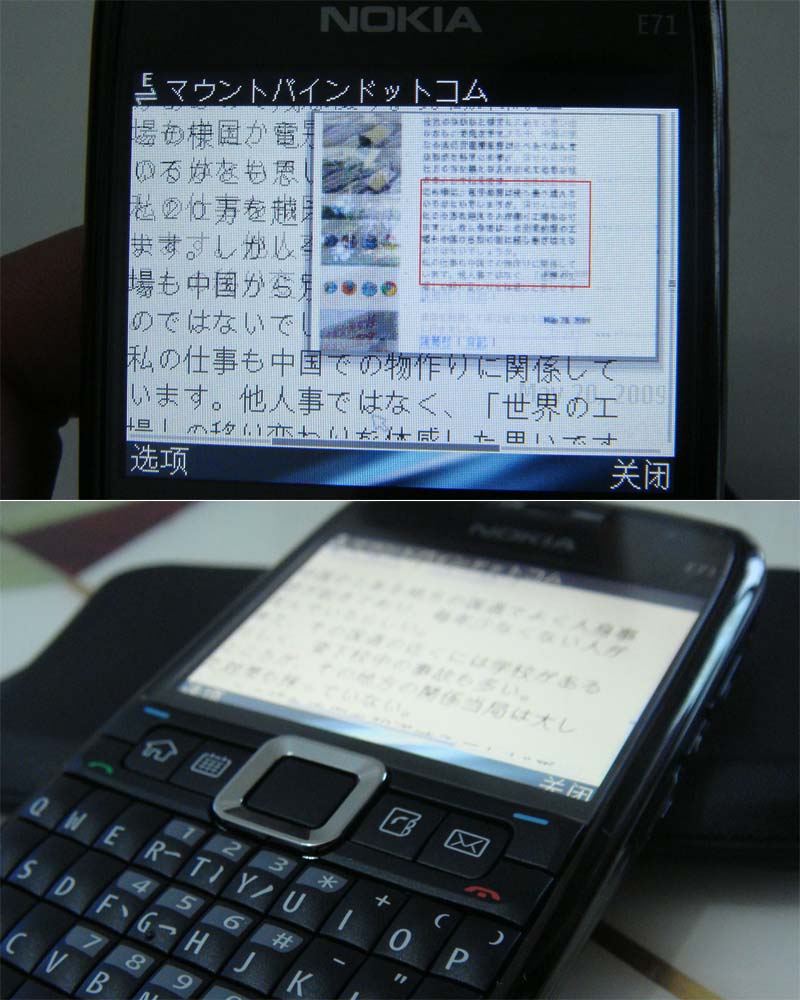 久しぶりに携帯を買いました。およそ1年振り。 今回は最近の中国の状況を踏まえ、3G(W-CDMA)携帯にしました。NokiaのE71 です。日本でも販売が決まっていたそうですが、Nokiaの日本撤退に伴い、販売中止になった機種です。 海外にいる日本人の間でも使用している人が多く、2008年の名機の一つだとか。 QWERTYキーボードが付いており、これぞスマートフォン!という感じで、非常に薄くもあるですが、デザイン的には嫌いな人もいるかも知れませんね。 買ったのは香港の家電量販店 。HKD3030と並行輸入品(水貨)よりは高い値段でしたが、予備の電池などがオマケで付いていました。 香港版なので、言語はもちろん中国語(繁体字/簡体字)と英語のみですが、初期状態でも日本語の表示は可能です。 ただし、日本語入力するには、+J for S60 などのソフトを別途インストールする必要があります。 E71は中国(内地)でも普通に売られている機種ですが、中国(内地)向けのE71は、3GもWi-Fi(無線LAN)も削られています。中国ではネットワーク接続機器に「進網許可 」という許可の取得が義務付けられており、元々3Gのなかった中国ではWi-Fiも含め、色々と取得が面倒らしく、はじめから削っているようです。 これから先それじゃあいかん!・・ということで、香港で購入しました。 ↓結局一番楽しいのは買う前に色々調べている時と買ってから設定で弄くっている時だったりするんですが・・ 家に帰って早速設定! まずはGoogle Mapsの携帯アプリ をインストール。E71にはGPSが内蔵されており、これら地図アプリと連動して動きます。地図はネットからダウンロードされるのですが、Wi-Fiからでも携帯電話のネットワークからでもOK。これで世界中のどこでも現在地が確認出来ます(まあ実はGPSがない携帯でも、Google Mapsアプリの場合、携帯電話ネットワークによる「ほぼ現在地」が確認できるんですが、ズレていたり、全然不正確だったりすることがあるので・・)。 次に、使い慣れているブラウザアプリのOpera Mini をインストール。これで日本のニュースチェックはバッチシです。実は、E71にデフォルトで入っているブラウザもなかなかいい感じで、何とFlashに対応しています。Flashはよく使うのでありがたいです。Symbian 携帯だけに、まだまだ色んなアプリがあるようなので楽しみです。Y-Browser Sports Tracker ところで、携帯は香港で買ったわけですが、特に設定することなく「中国移動 」のネットワーク設定(インターネット/MMS)が出来ていました。 以前、香港でソニーエリクソンの携帯を買ったことがあるのですが、その時は手動で設定をしないとインターネットとMMS(彩信)が使えなかったので意外でした。 楽な事に越したことはないのですが、聨通(China Unicom) にしたらやっぱり設定しないといけないのでしょうか・・? 海外携帯っていつの間にこんなに進化したんでしょうね。 以前は日本の「ガラパゴス携帯 」が世界の最先端を走っていると思っていましたが、Wi-Fi対応など見るにつけ、今では海外携帯の方が自由度が高く、進んでいるなあ・・と感じます。値段も日本の場合2年も縛りがある上にそれほど安いと感じる価格ではなくなりました。 まあ日本の場合は、携帯電話のビジネスモデルがキャリア主導なので、キャリアの利益確保のため、どうしても自由度が低くなるんでしょうし、誰もが自由度の高い設定を使いこなせるわけではないですしね。技術云々の問題じゃあないんですよね。 携帯電話は、途上国でもどんどん普及しており、日本のメーカーも負けずにがんばって欲しいと思います。